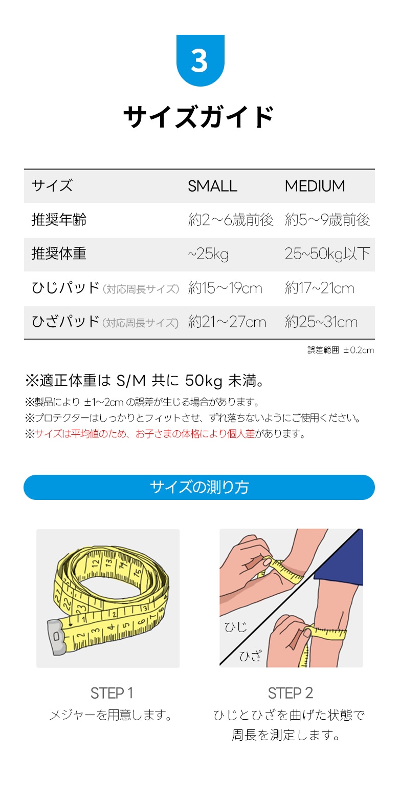 ●対象年齢はあくまでも目安ですので、必ずお子様のサイズを測ってからご購入ください。